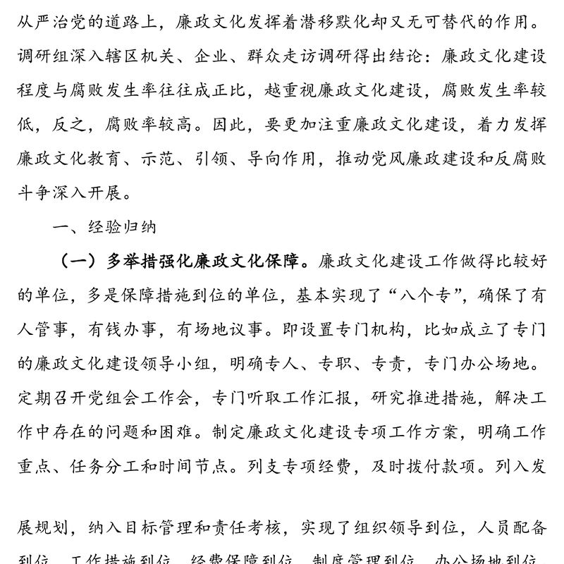 加強廉政文化建設,推進全面從嚴治黨——關于廉政文化建設在全面從嚴治黨中作用發揮的調研報告,廉政文化,公文 Array