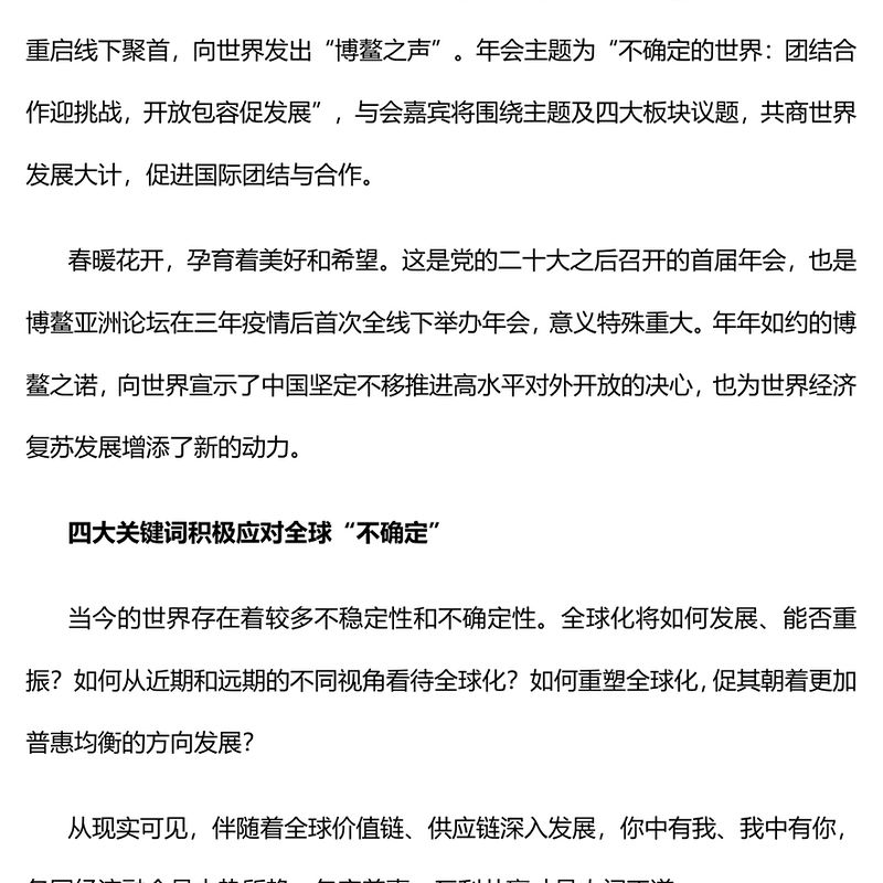 黨課講稿 > 2023以團結合作應對不確定的世界PPT精美大氣風寫在博鰲亞洲論壇2023年年會之際專題黨課課件(講稿).DOCX