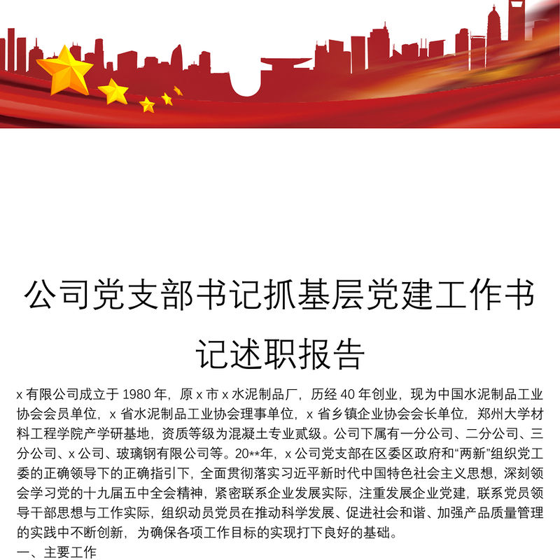 工圖網提供公司黨支部書記抓基層黨建工作書記述職報告供會員免費下載。更多精彩黨課PPT素材,盡在工圖網。