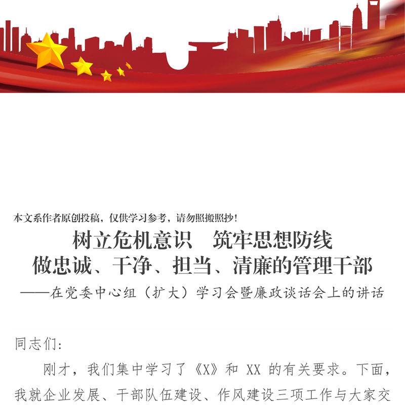 樹立危機意識筑牢思想防線做忠誠、干凈、擔當、清廉的管理干部,樹立危機意識筑牢思想防線做忠誠、干凈、擔當、清廉的管理干部,公文范例,領導述職報告,機關公文寫作 Array