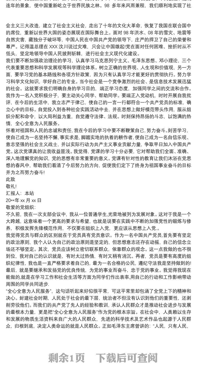 20xx年關于黨員發展對象思想匯報材料范文 Array