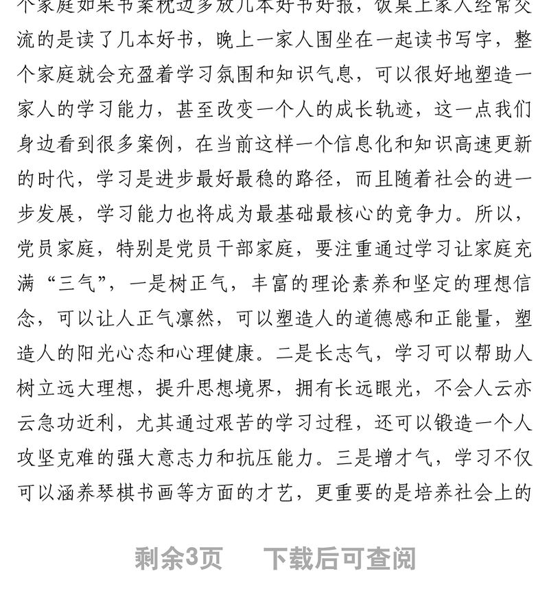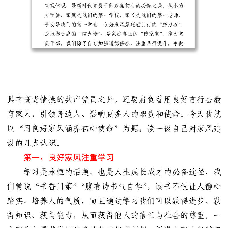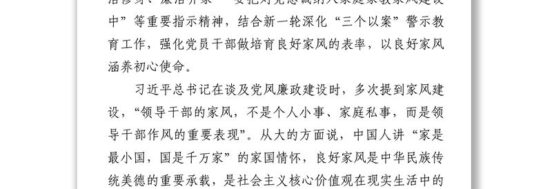 用良好家風涵養初心使命——樹立良好家風建設廉潔家庭學習研討材料