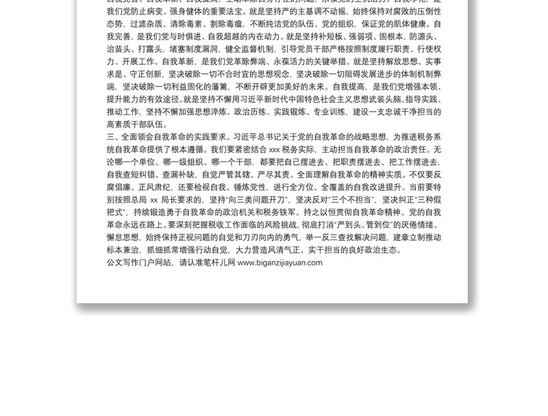 學習黨的自我革命戰略思想發言(市稅務局黨委書記)