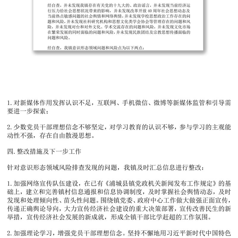 鄉鎮開展意識形態領域安全風險排查工作自查報告 Array