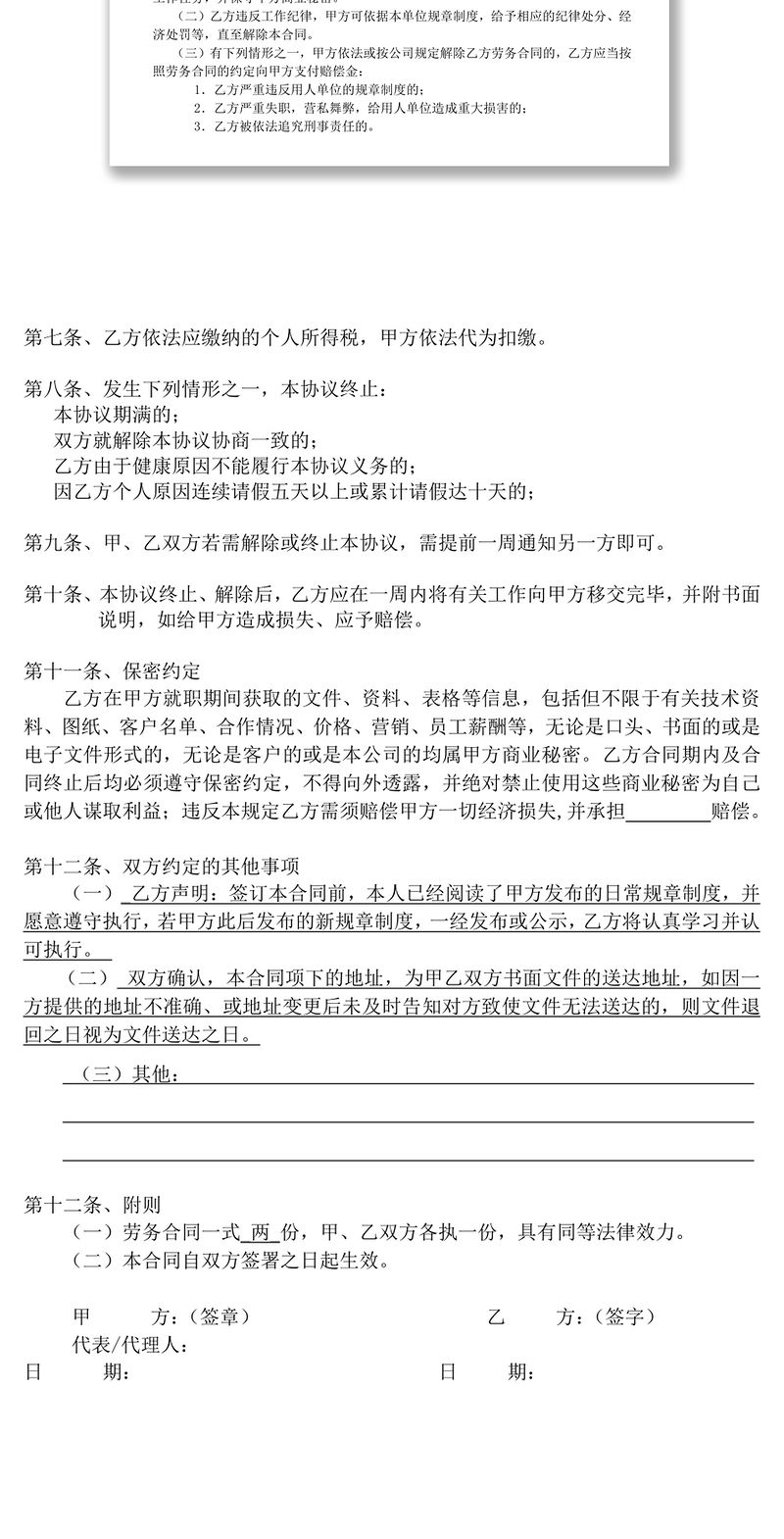 勞務合同書包含