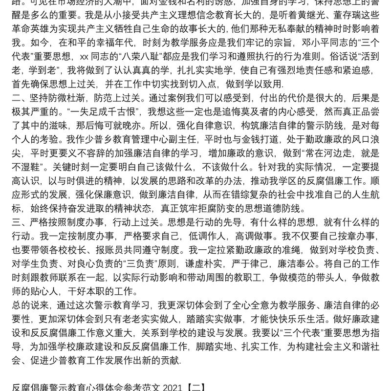 2021關于領導干部參觀反腐倡廉警示教育基地心得體會范文包含