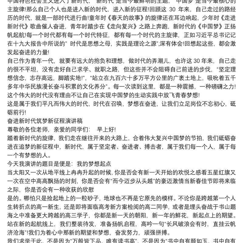 學生奮進新時代爭做筑夢人征文精選例文8篇包含