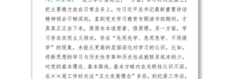 2021區紀委常務副書記黨史學習教育專題民主生活會檢視剖析材料