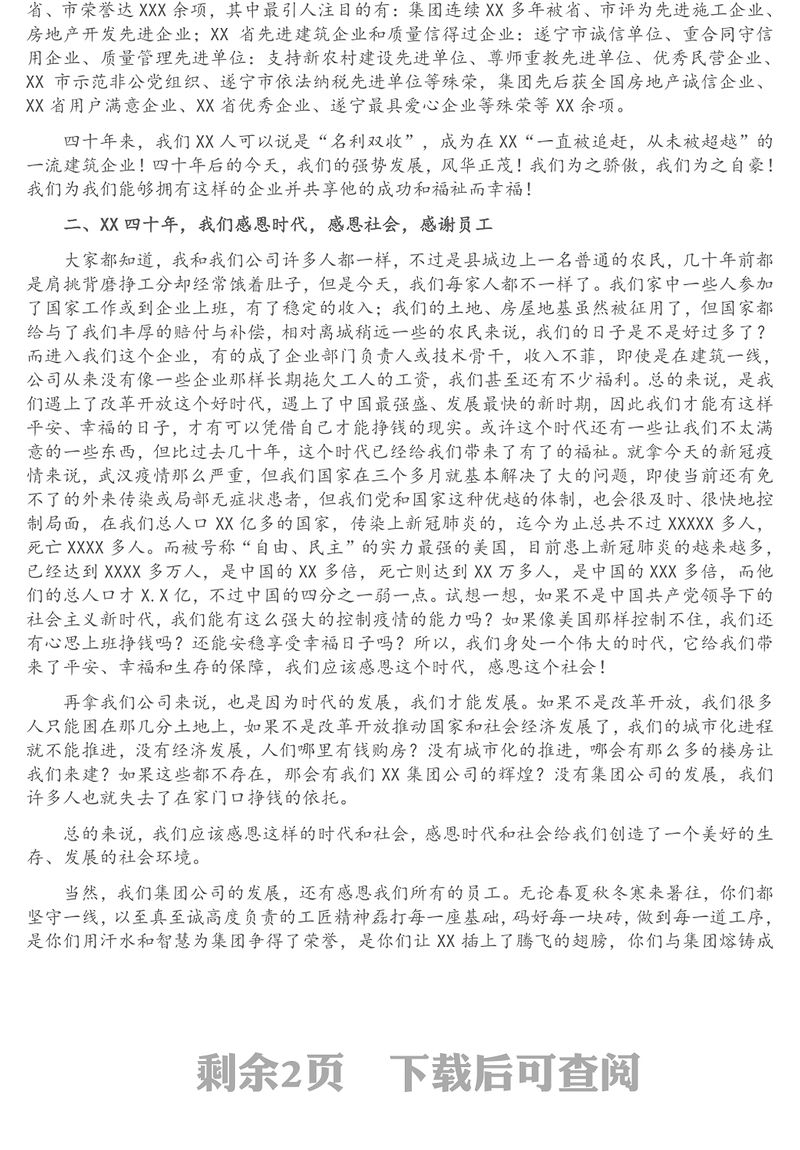 董事長在XX集團成立XX周年慶祝大會上的講話(集團公司) Array