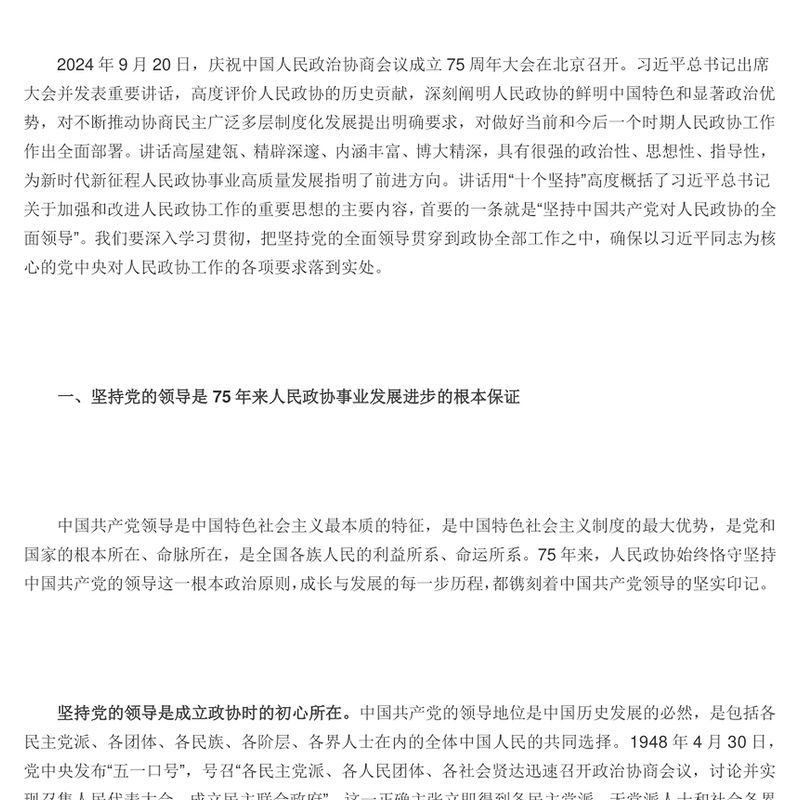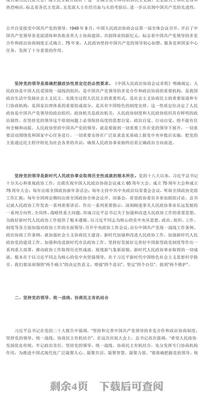 堅持黨的全面領導是新時代人民政協事業高質量發展的根本保證PPT紅色黨建風黨員干部學習教育黨課(講稿) Array