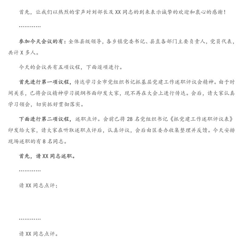 在全區(qū)基層黨組織書(shū)記抓基層黨建工作述職評(píng)議會(huì)上的主持詞,基層黨建工作,公文 Array
