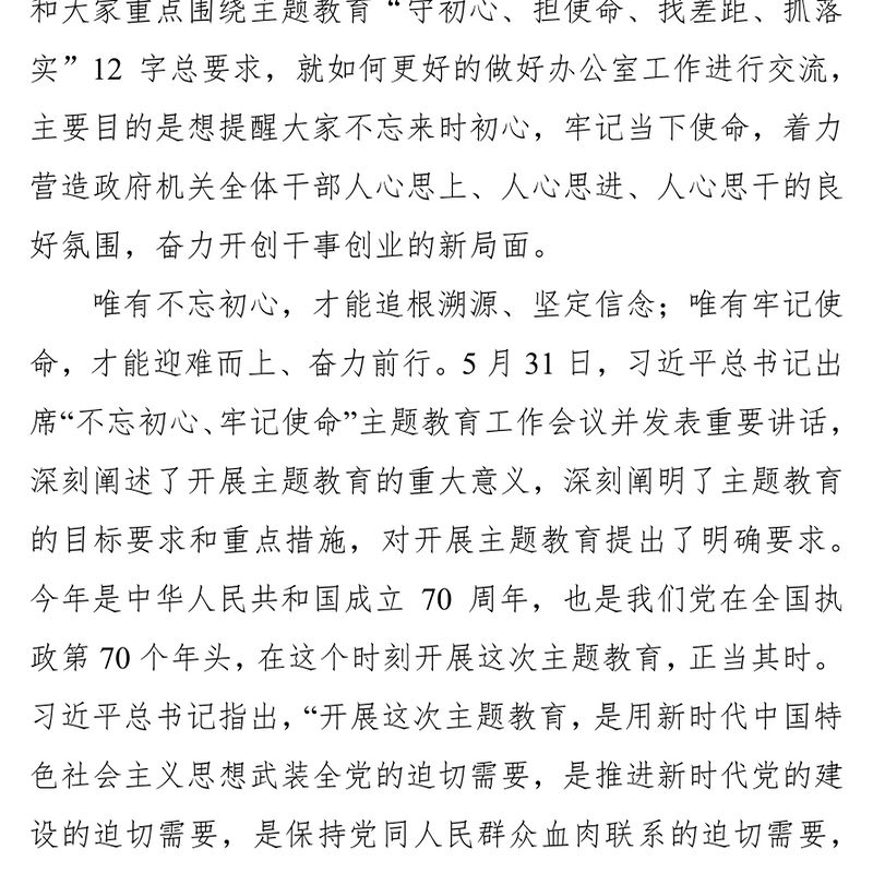 第二批“不忘初心牢記使命”主題教育黨課:辦公室支部專題黨課講稿