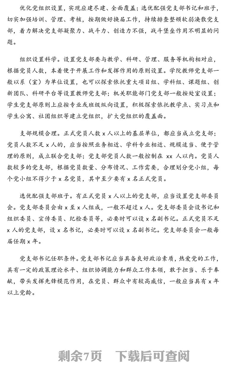 XX黨支部標準化建設實施方案包含