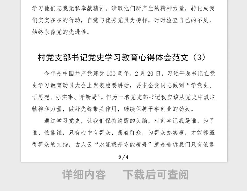 工圖網提供4篇村黨支部書記黨史學習教育心得體會范文4篇村干部黨史學習心得體會研討發言材料參考供會員免費下載。更多精彩黨課PPT素材,盡在工圖網。