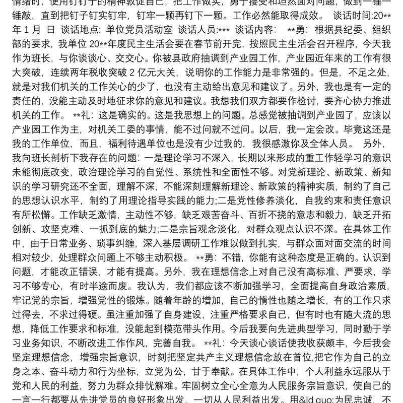 工圖網(wǎng)提供民主生活會(huì)談心談話記錄3篇供會(huì)員免費(fèi)下載。更多精彩黨課PPT素材,盡在工圖網(wǎng)。