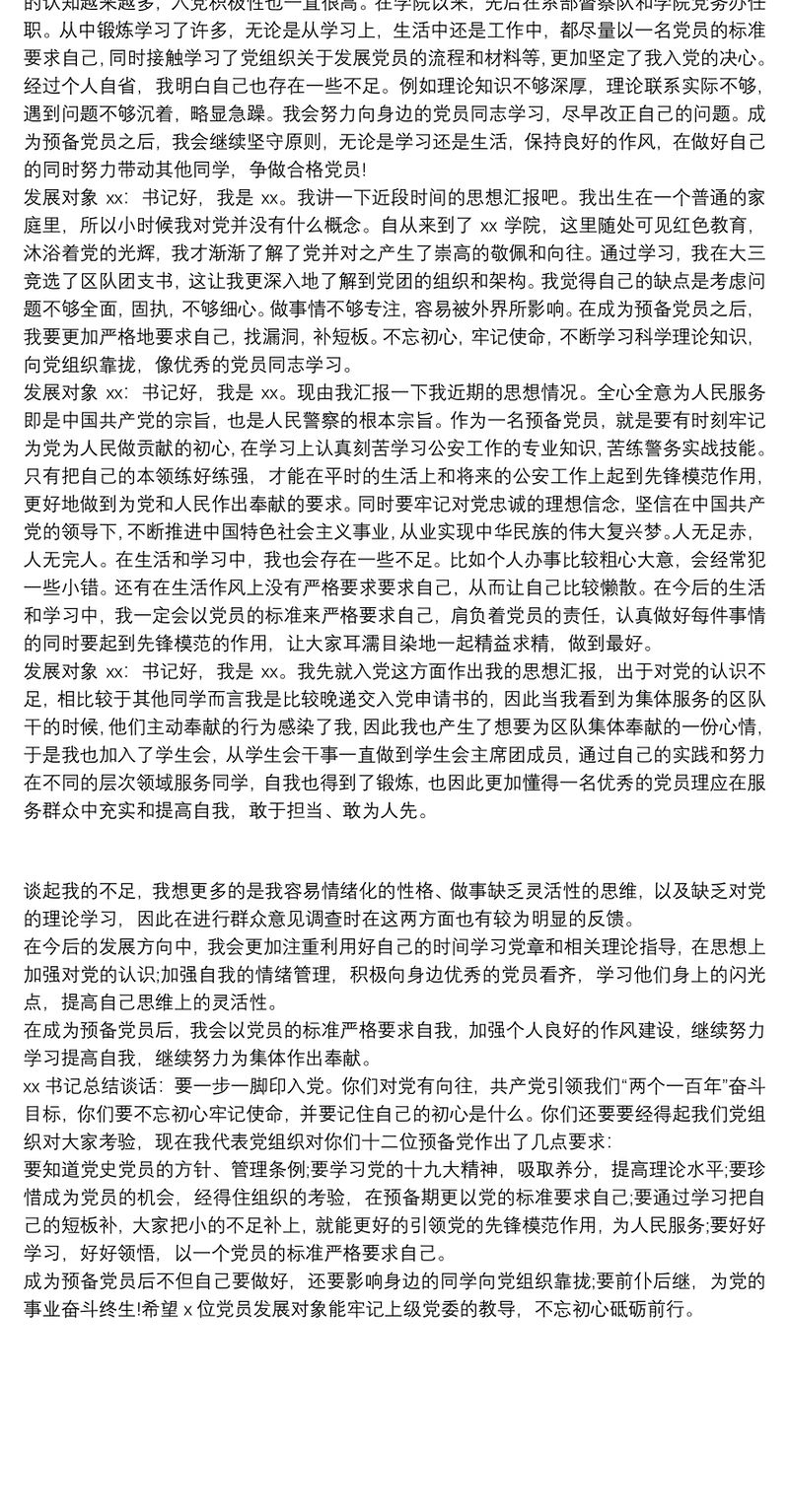 2021與發展對象談話記錄10篇2021年發展對象談話記錄10篇2022發展對象匯報對黨的認識入黨動機本人履歷家庭和主要社會關系情況以及需要向黨2022發展對象掌握黨的基本理論和基本知識的情況2022發展對象對黨的認識入黨動機本人履歷匯報范文2021發展對象轉預備黨員個人情況匯報發言2022支部書記與發展對象的談話記錄內容2021護士發展對象轉為預備黨員發言2022發展對象轉預備黨員講稿個人情況匯報范例2022預備黨員發展對象延期說明2021發展對象轉預備黨員自我介紹1分鐘2022年7月發展對象思想匯報7月份2022發展對象座談會群眾發言2021建黨100周年待發展對象發言稿發展對象轉預備黨員講稿2021發展對象匯報對黨的認識入黨動機