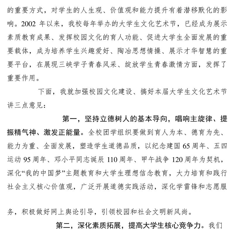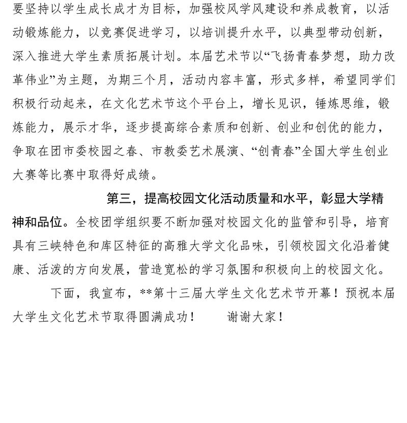2021大學生文化藝術節開幕式講話稿
