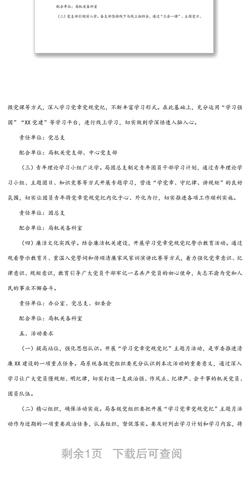 局黨委學習黨章黨紀黨規活動方案范文包含