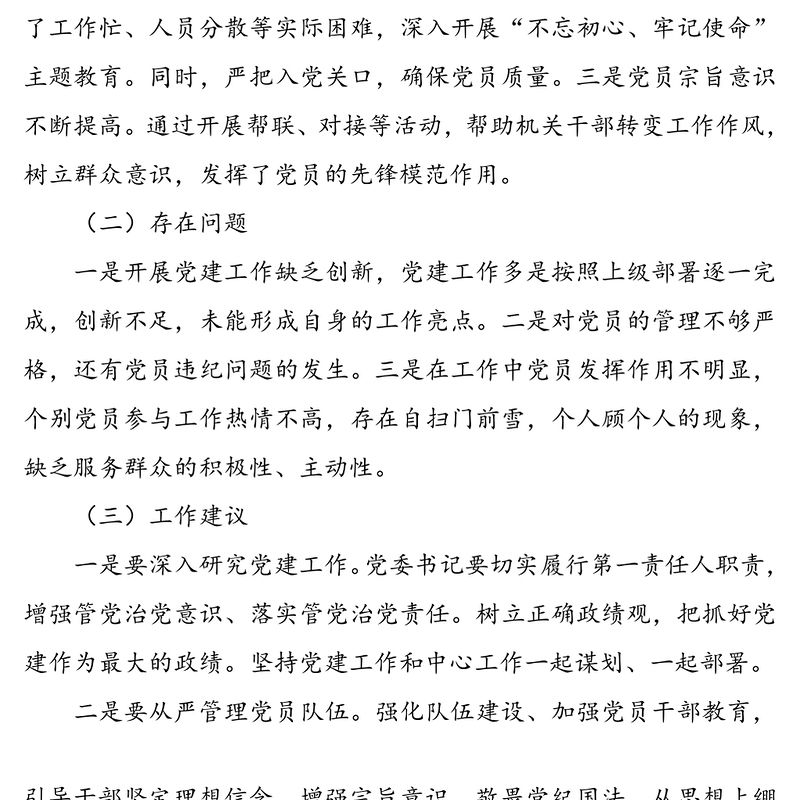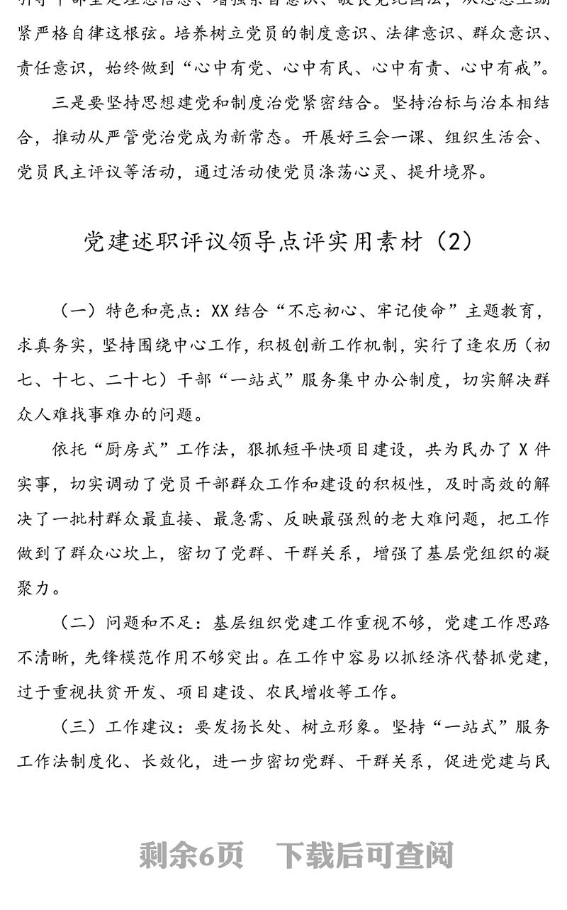 在黨組織書記抓基層黨建述職評議考核會議上的點評意見包含