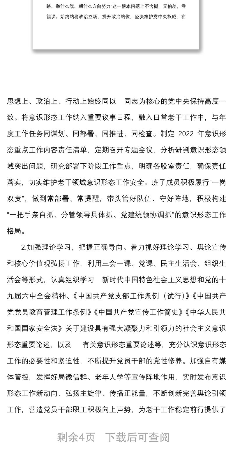 2022年上半年意識形態工作總結范文工作匯報報告含風險點分析和下步工作計劃