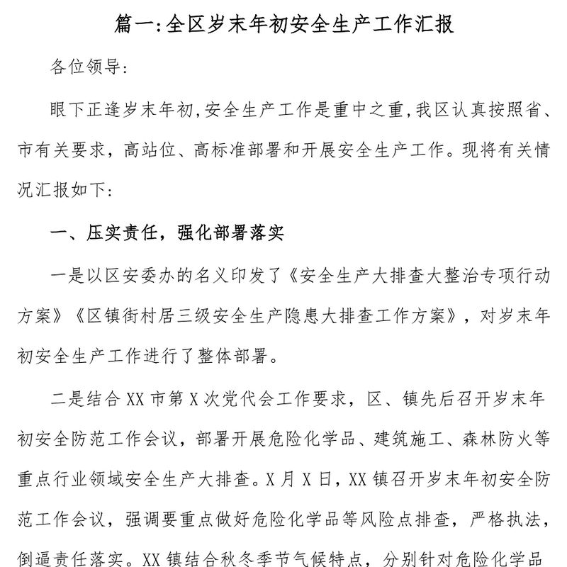 (3篇)全區(qū)歲末年初安全生產(chǎn)工作匯報及工作會議的講話 Array