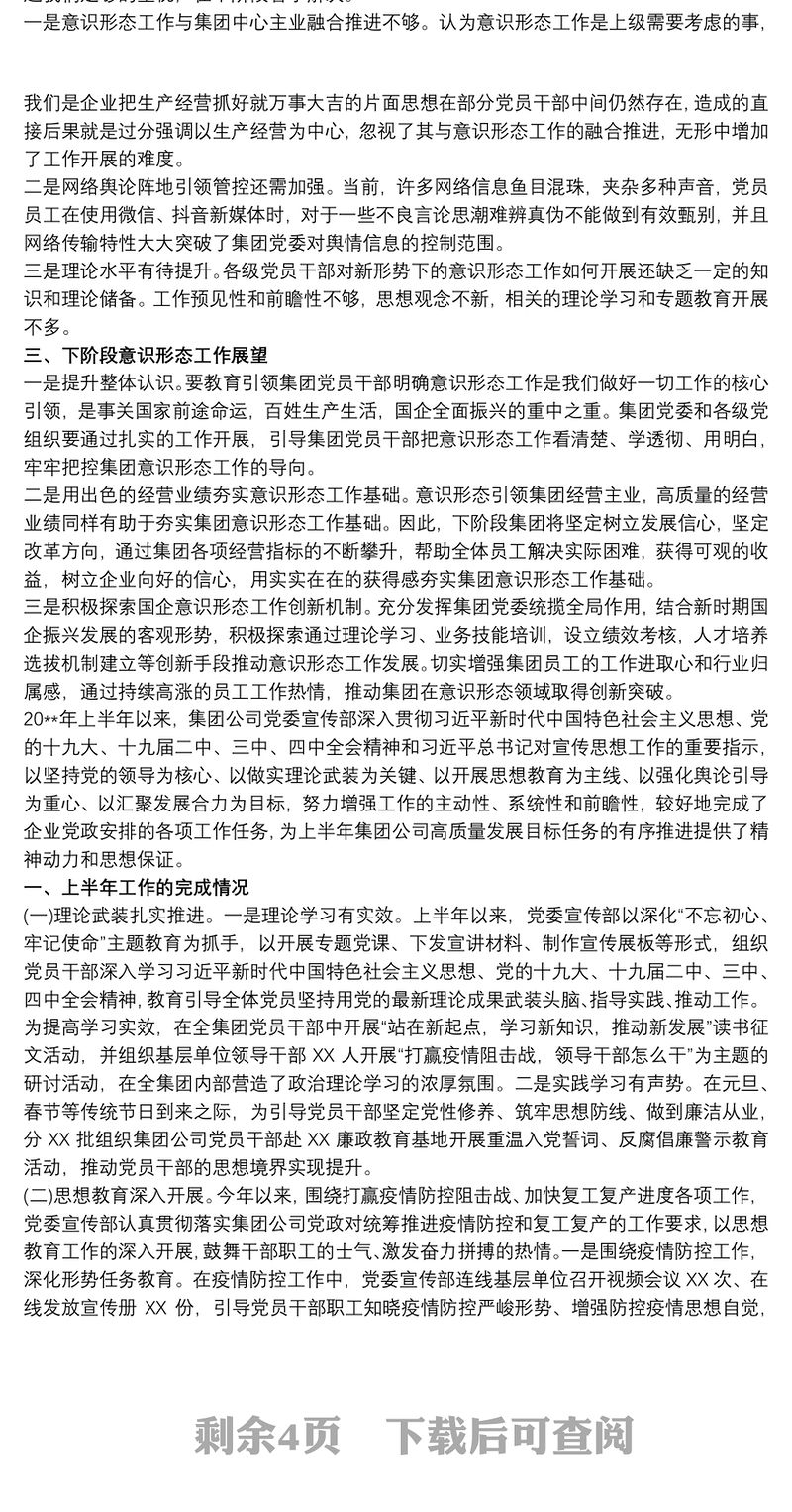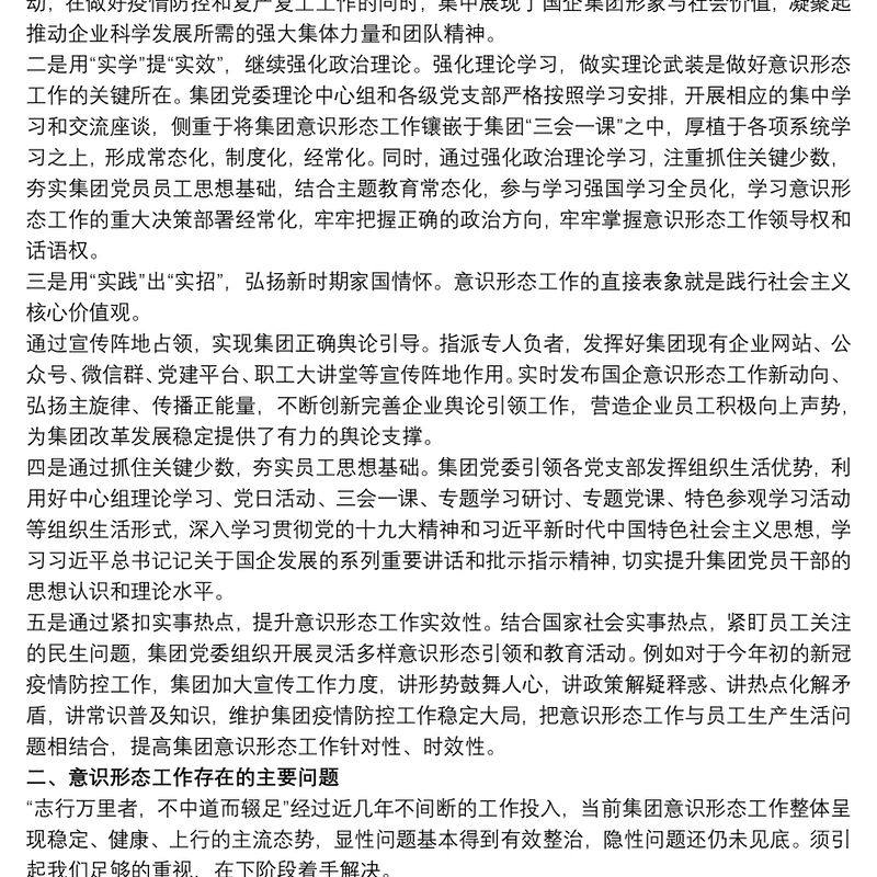 國企20xx年意識(shí)形態(tài)工作報(bào)告三篇 Array