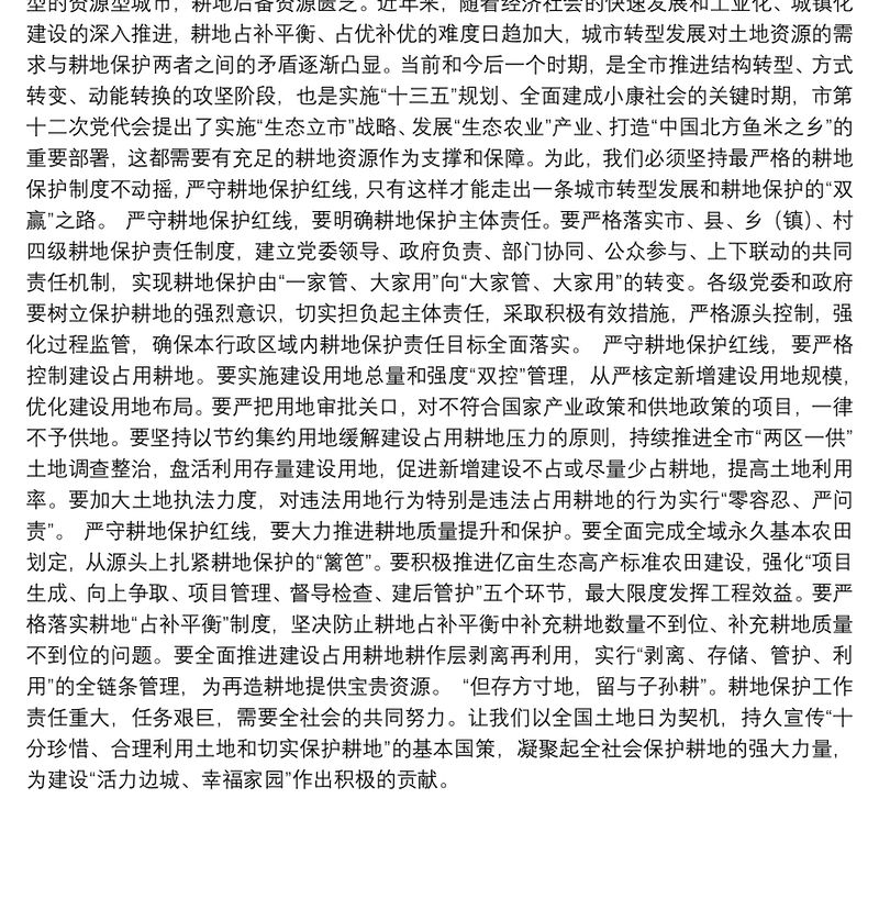 公文范文 > (黑龍江省 鶴崗市)副市長 于志偉— 嚴守耕地保護紅線 助推城市轉型發展.DOCX
