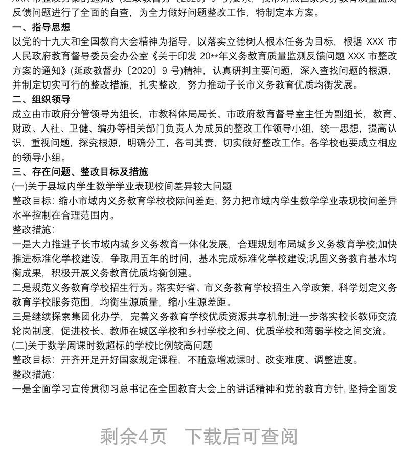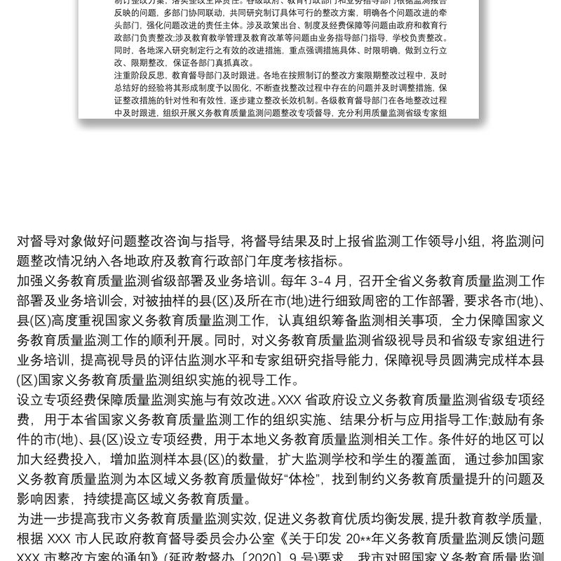 有關國家義務教育質量監測反饋問題整改方案 Array