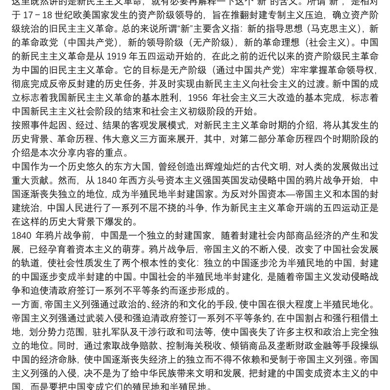 新民主主義革命時期歷史專題學習研討發言